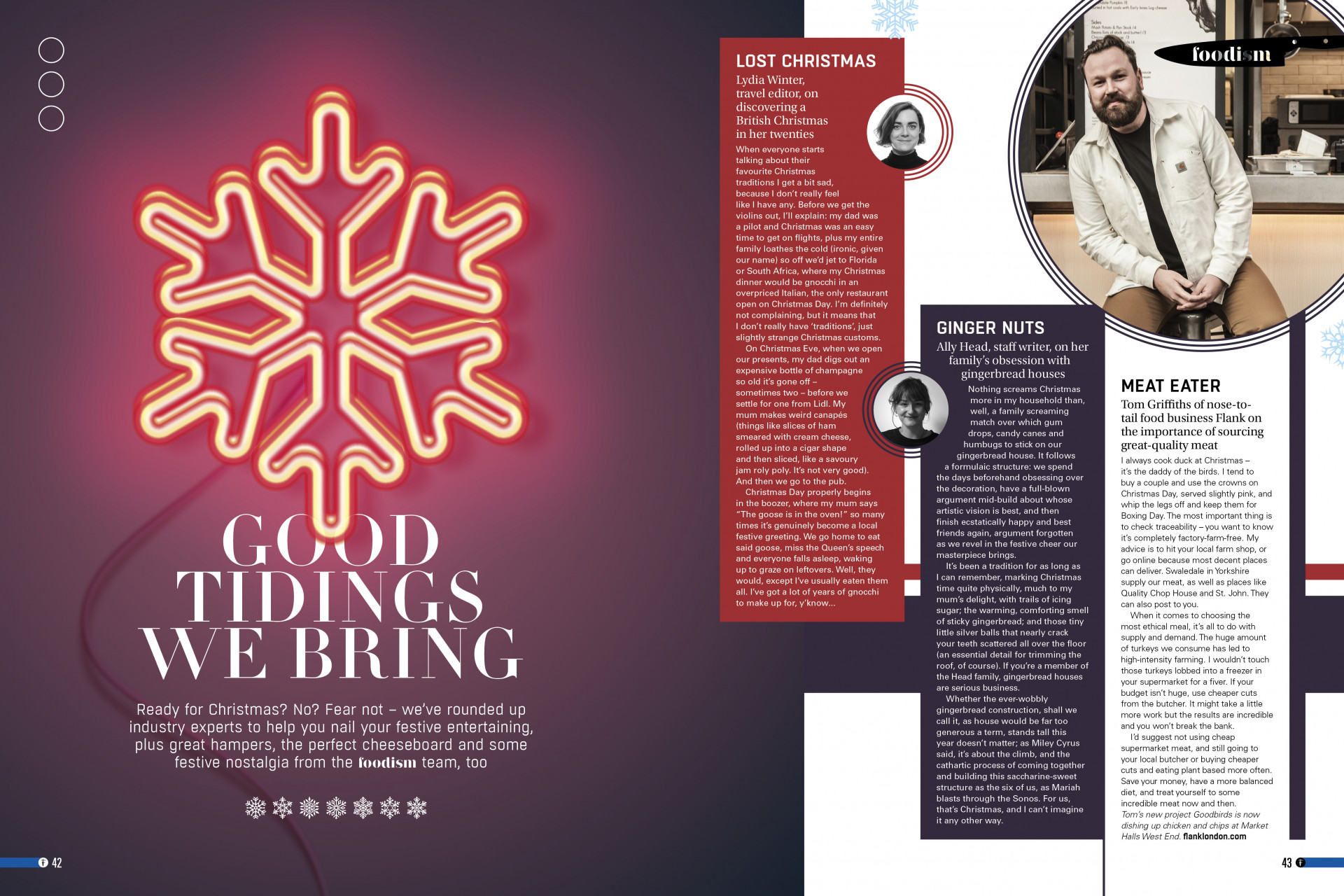 It's nearly Christmas time and the latest Foodism issue is here to help you with top tips and Christmas present picks for the big day. For this year's Christmas special, read London's top cooks spilling their go-to recipes for smooth-sailing Christmas cooking, a gift guide to top all gift guides, plus Clare Finney on breakup foods and, as always, much more.</p>