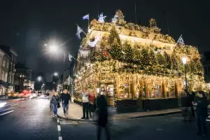 The statistics around the Churchill Arms, which straddles the much-debated Kensington/Notting Hill border, are staggering. This Fuller’s pub features 20,000 LED lights and 60 full-sized Christmas trees on its exterior during the festive period. Installation, perhaps not surprisingly, takes a couple of weeks, in the run-up to said lights being switched on in mid-November (the 13th, in 2025, at 6pm).