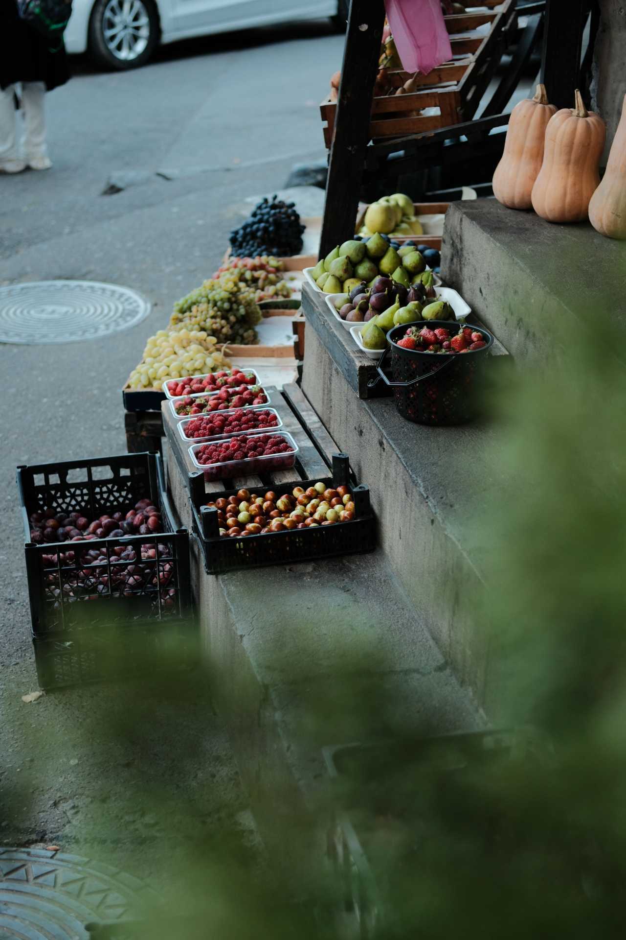 Market crates filled with summer fruits