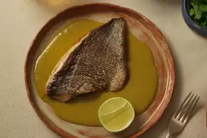 At Speedboat Bar the mackerel is paired with chu chee sauce – a thick, coconut-rich concoction that hails from Southern Thailand often paired with fish (chu chee pla). I’ve made the paste from scratch here, adding fresh turmeric, ginger and coriander to the mix for aromatic fragrance. This makes the sauce a luminous yellow compared to its traditional deep orange and doubles as a natural Sudafed thanks to its sinus-clearing vigour. If you’re short on time, use pre-made Thai red curry paste and mix it with coconut cream, shrimp paste, and palm sugar to make the sauce.